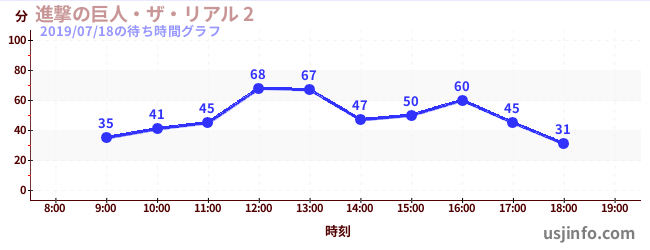 • 進撃の巨人・ザ・リアル 2$B$N(B2019年07月18日の待ち時間