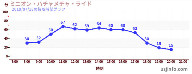 • ミニオン・ハチャメチャ・ライド$B$N(B2019年07月18日の待ち時間