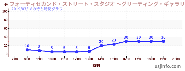 • フォーティセカンド・ストリート・スタジオ ~グリーティング・ギャラリー~ ミニオン$B$N(B2019年07月18日の待ち時間