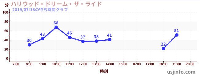 • ハリウッド・ドリーム・ザ・ライド$B$N(B2019年07月18日の待ち時間