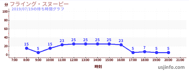 • フライング・スヌーピー$B$N(B2019年07月19日の待ち時間