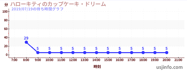 • ハローキティのカップケーキ・ドリーム$B$N(B2019年07月19日の待ち時間