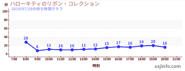 • ハローキティのリボン・コレクション$B$N(B2019年07月19日の待ち時間