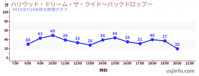 • ハリウッド・ドリーム・ザ・ライド〜バックドロップ〜$B$N(B2019年07月19日の待ち時間