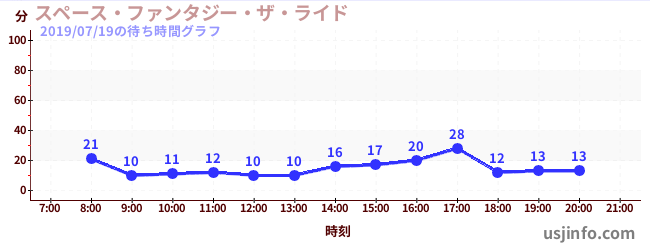 • スペース・ファンタジー・ザ・ライド$B$N(B2019年07月19日の待ち時間