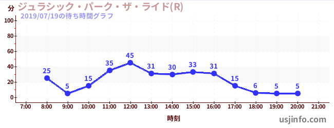 • ジュラシック・パーク・ザ・ライド(R)$B$N(B2019年07月19日の待ち時間