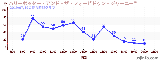 • ハリーポッター・アンド・ザ・フォービドゥン・ジャーニー™$B$N(B2019年07月19日の待ち時間