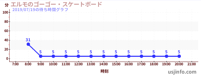 • エルモのゴーゴー・スケートボード$B$N(B2019年07月19日の待ち時間
