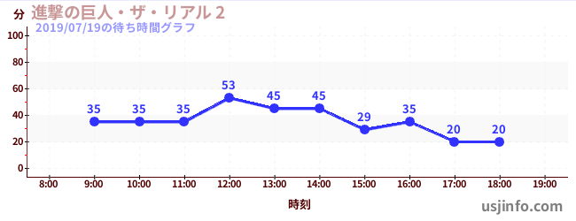 • 進撃の巨人・ザ・リアル 2$B$N(B2019年07月19日の待ち時間