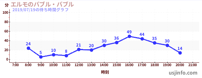 • エルモのバブル・バブル$B$N(B2019年07月19日の待ち時間