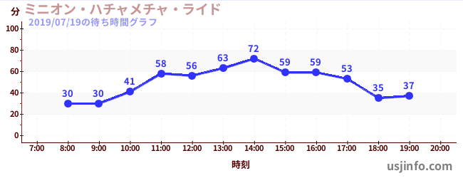 • ミニオン・ハチャメチャ・ライド$B$N(B2019年07月19日の待ち時間