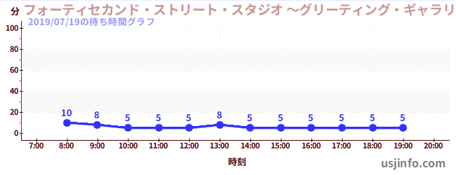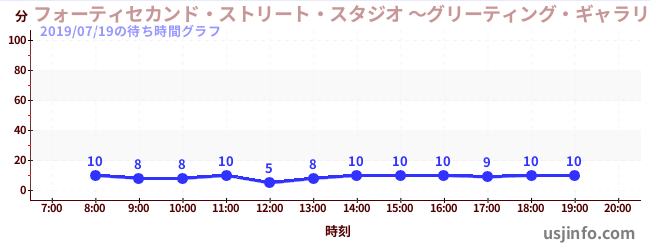 • フォーティセカンド・ストリート・スタジオ ~グリーティング・ギャラリー~ ミニオン$B$N(B2019年07月19日の待ち時間
