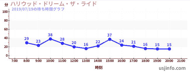 • ハリウッド・ドリーム・ザ・ライド$B$N(B2019年07月19日の待ち時間
