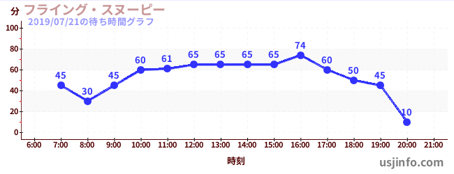 • フライング・スヌーピー$B$N(B2019年07月21日の待ち時間