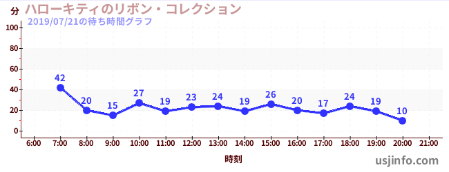 • ハローキティのリボン・コレクション$B$N(B2019年07月21日の待ち時間