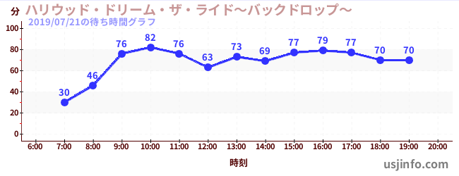 • ハリウッド・ドリーム・ザ・ライド〜バックドロップ〜$B$N(B2019年07月21日の待ち時間