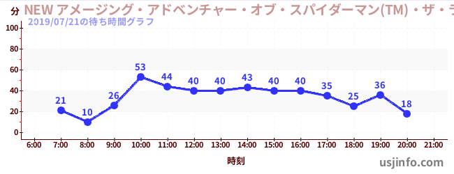 • NEW アメージング・アドベンチャー・オブ・スパイダーマン(TM)・ザ・ライド 4K3D$B$N(B2019年07月21日の待ち時間