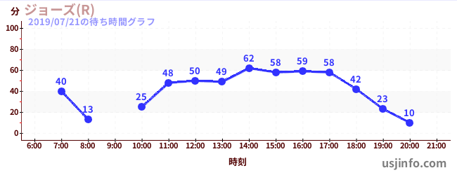 • ジョーズ(R)$B$N(B2019年07月21日の待ち時間