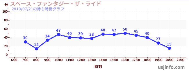 • スペース・ファンタジー・ザ・ライド$B$N(B2019年07月21日の待ち時間