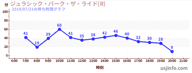 • ジュラシック・パーク・ザ・ライド(R)$B$N(B2019年07月21日の待ち時間