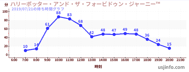 • ハリーポッター・アンド・ザ・フォービドゥン・ジャーニー™$B$N(B2019年07月21日の待ち時間