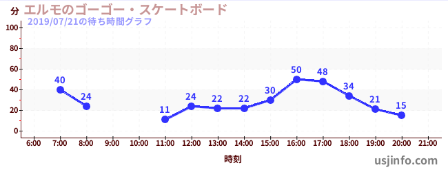 • エルモのゴーゴー・スケートボード$B$N(B2019年07月21日の待ち時間