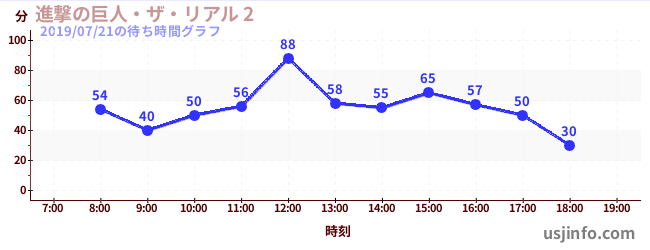 • 進撃の巨人・ザ・リアル 2$B$N(B2019年07月21日の待ち時間