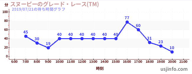 • スヌーピーのグレード・レース(TM)$B$N(B2019年07月21日の待ち時間