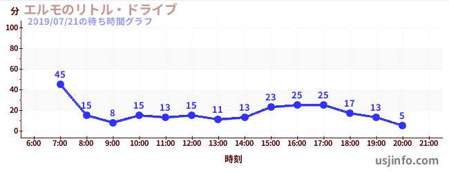 • エルモのリトル・ドライブ$B$N(B2019年07月21日の待ち時間