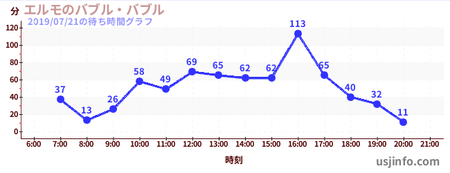 • エルモのバブル・バブル$B$N(B2019年07月21日の待ち時間