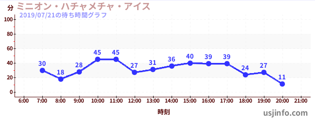 • ミニオン・ハチャメチャ・アイス$B$N(B2019年07月21日の待ち時間