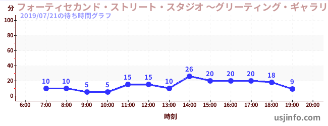 • フォーティセカンド・ストリート・スタジオ ~グリーティング・ギャラリー~ ミニオン$B$N(B2019年07月21日の待ち時間
