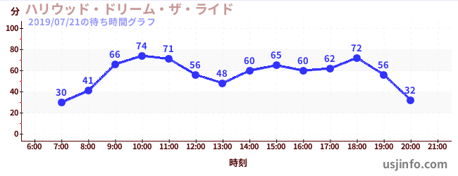 • ハリウッド・ドリーム・ザ・ライド$B$N(B2019年07月21日の待ち時間