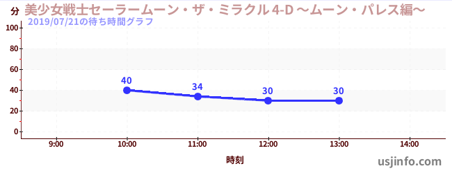 • 美少女戦士セーラームーン・ザ・ミラクル 4-D ~ムーン・パレス編~$B$N(B2019年07月21日の待ち時間