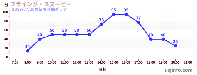 • フライング・スヌーピー$B$N(B2019年07月26日の待ち時間