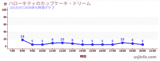 • ハローキティのカップケーキ・ドリーム$B$N(B2019年07月26日の待ち時間