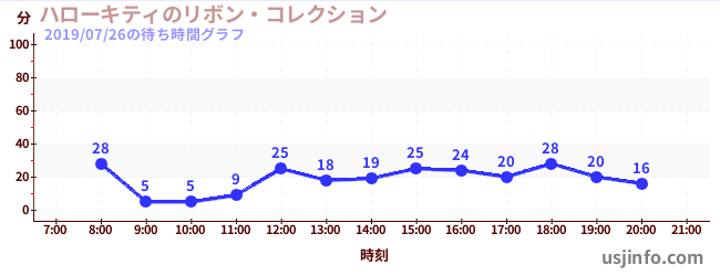 • ハローキティのリボン・コレクション$B$N(B2019年07月26日の待ち時間