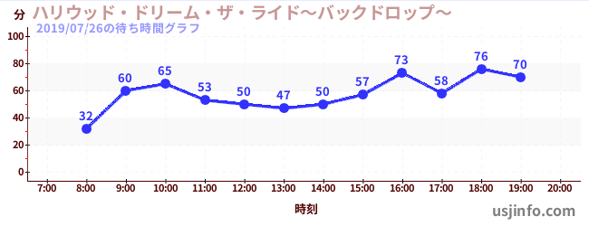 • ハリウッド・ドリーム・ザ・ライド〜バックドロップ〜$B$N(B2019年07月26日の待ち時間