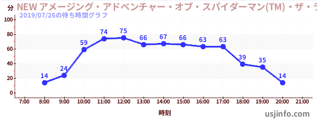• NEW アメージング・アドベンチャー・オブ・スパイダーマン(TM)・ザ・ライド 4K3D$B$N(B2019年07月26日の待ち時間