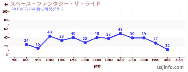 • スペース・ファンタジー・ザ・ライド$B$N(B2019年07月26日の待ち時間