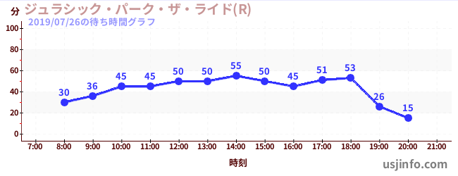 • ジュラシック・パーク・ザ・ライド(R)$B$N(B2019年07月26日の待ち時間
