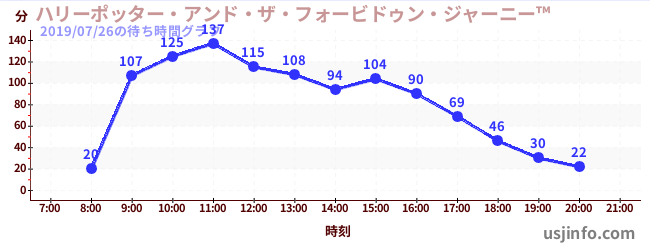 • ハリーポッター・アンド・ザ・フォービドゥン・ジャーニー™$B$N(B2019年07月26日の待ち時間
