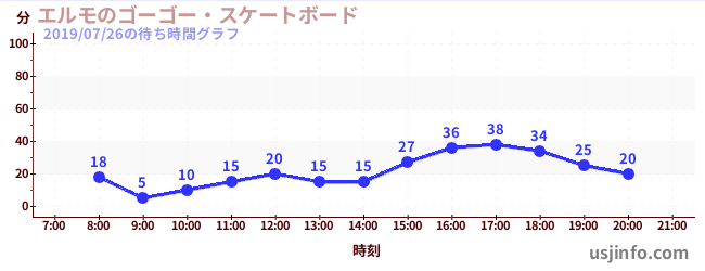 • エルモのゴーゴー・スケートボード$B$N(B2019年07月26日の待ち時間