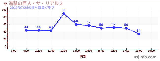 • 進撃の巨人・ザ・リアル 2$B$N(B2019年07月26日の待ち時間