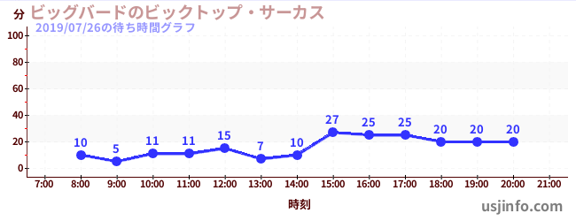 • ビッグバードのビックトップ・サーカス$B$N(B2019年07月26日の待ち時間