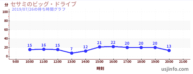 • セサミのビッグ・ドライブ$B$N(B2019年07月26日の待ち時間