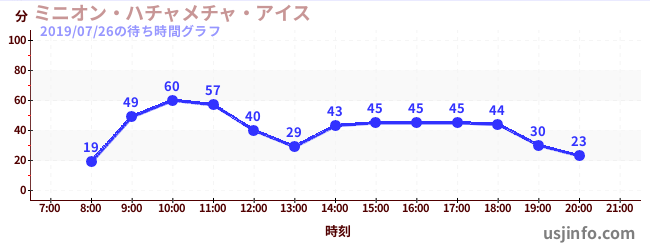 • ミニオン・ハチャメチャ・アイス$B$N(B2019年07月26日の待ち時間
