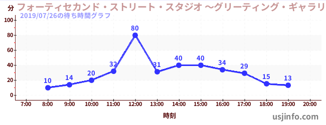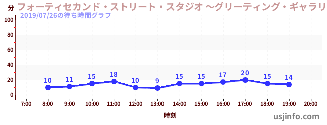 • フォーティセカンド・ストリート・スタジオ ~グリーティング・ギャラリー~ ミニオン$B$N(B2019年07月26日の待ち時間
