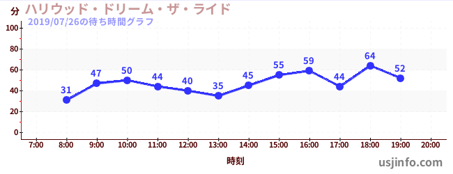 • ハリウッド・ドリーム・ザ・ライド$B$N(B2019年07月26日の待ち時間