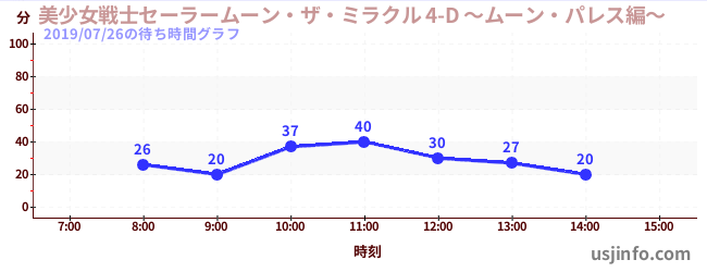 • 美少女戦士セーラームーン・ザ・ミラクル 4-D ~ムーン・パレス編~$B$N(B2019年07月26日の待ち時間